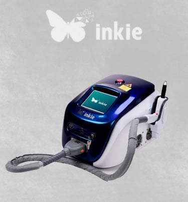 O Inkie Laser utiliza a tecnologia Q-Switched Nd:YAG para remover tatuagens, micropigmentações e lesões pigmentadas. Atua com dois comprimentos de onda: 1064 nm (para pigmentos escuros) e 532 nm (para pigmentos claros).
